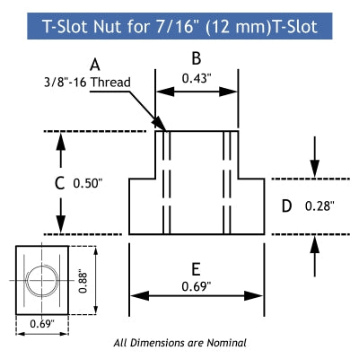 Following are the dimensions of the T-slot nuts that we sell separately or as part of a set.