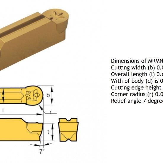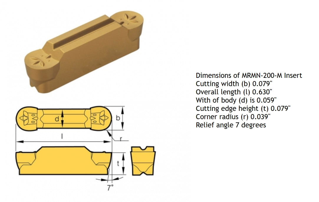 MRMN-200-M grooving insert with grade BPS253-CVD coating is sutable for steel and cast steel continuous cutting, and interrupted cutting for finishing to roughing. The full radius geometry is suitable for applications that require profiling.