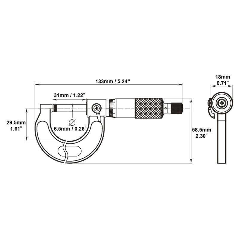 Dasqua 0-1" .0001" Outside Micrometer. This 0-1" micrometer features carbide faces and clear 0.0001" graduations on a satin-chrome finish. The micrometer has a ratchet stop for exact repetitive readings and a lock lever to lock the barrel.