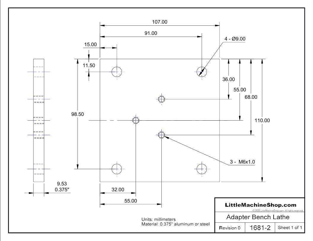 Here is a drawing of an adapter plate you can make that will mount the milling attachment on our bench lathe.