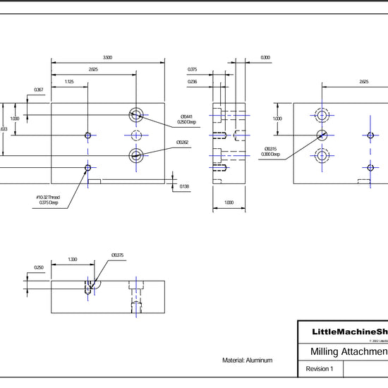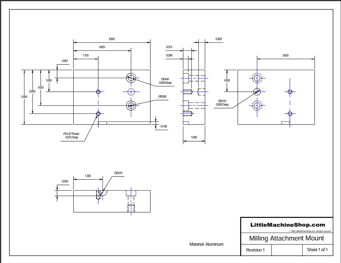 See associated plans for a mounting bracket that mounts the Taig milling attachment at the correct position on the mini lathe. This mounting block is Paul Mecca's design. Mount the plate to the lathe with M6x25 cap screws.