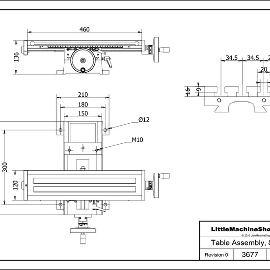 The table is 120 mm (4.73") by 460 mm (18.11"). It has three 12 mm T-slots.