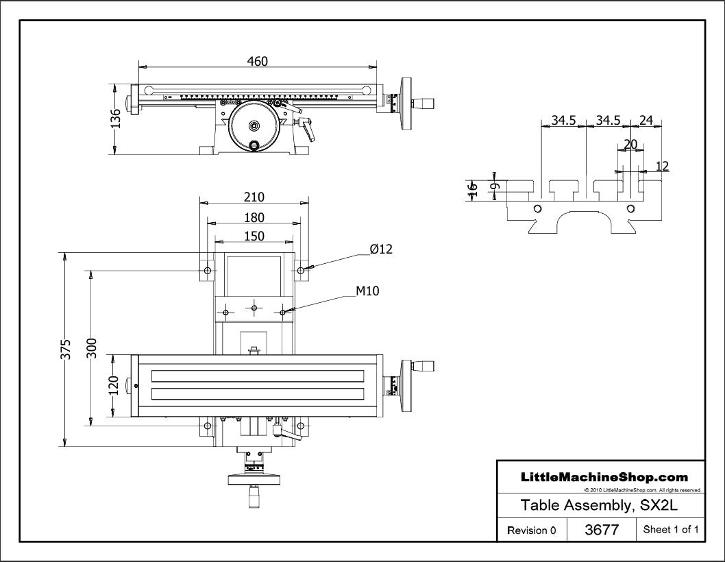 This is a complete X-Y table assembly for a mini mill with a tilting column. There is a cutout at the back of the base for the tilting mechanism as well as bolt holes for the tilting hardware to attach to the base. The table area and travel on this table assembly is greater than the factory tables provided on older mini mills. For comparison see P/N 1765.