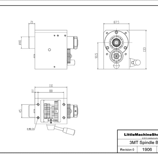 A 3 Morse Taper spindle with all the gears, bearings, spacers, and top nut that ride on it.